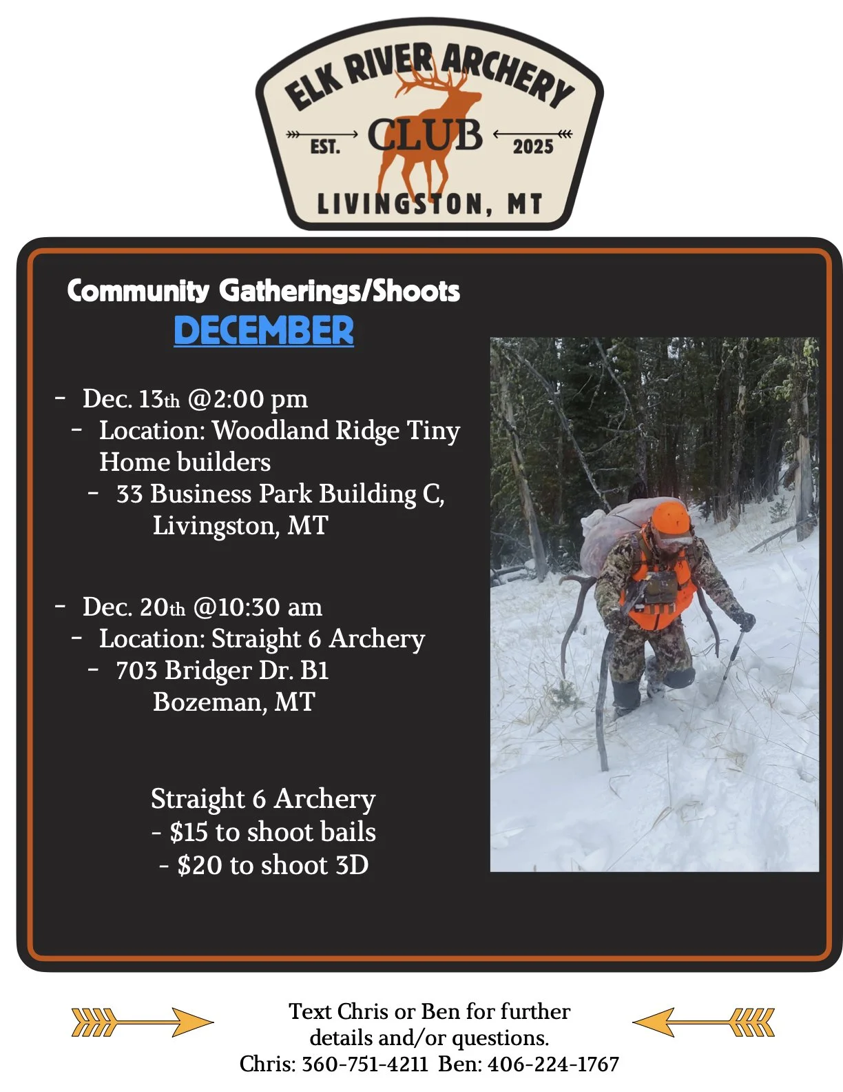 With the wind and weather we are moving indoors. We are waiting to hear more details about the local 4H shoot at the fair grounds and will share those as they come in. We hope to see everyone in town and in Bozeman for this months shoots. And we hope everyone has a great holiday!